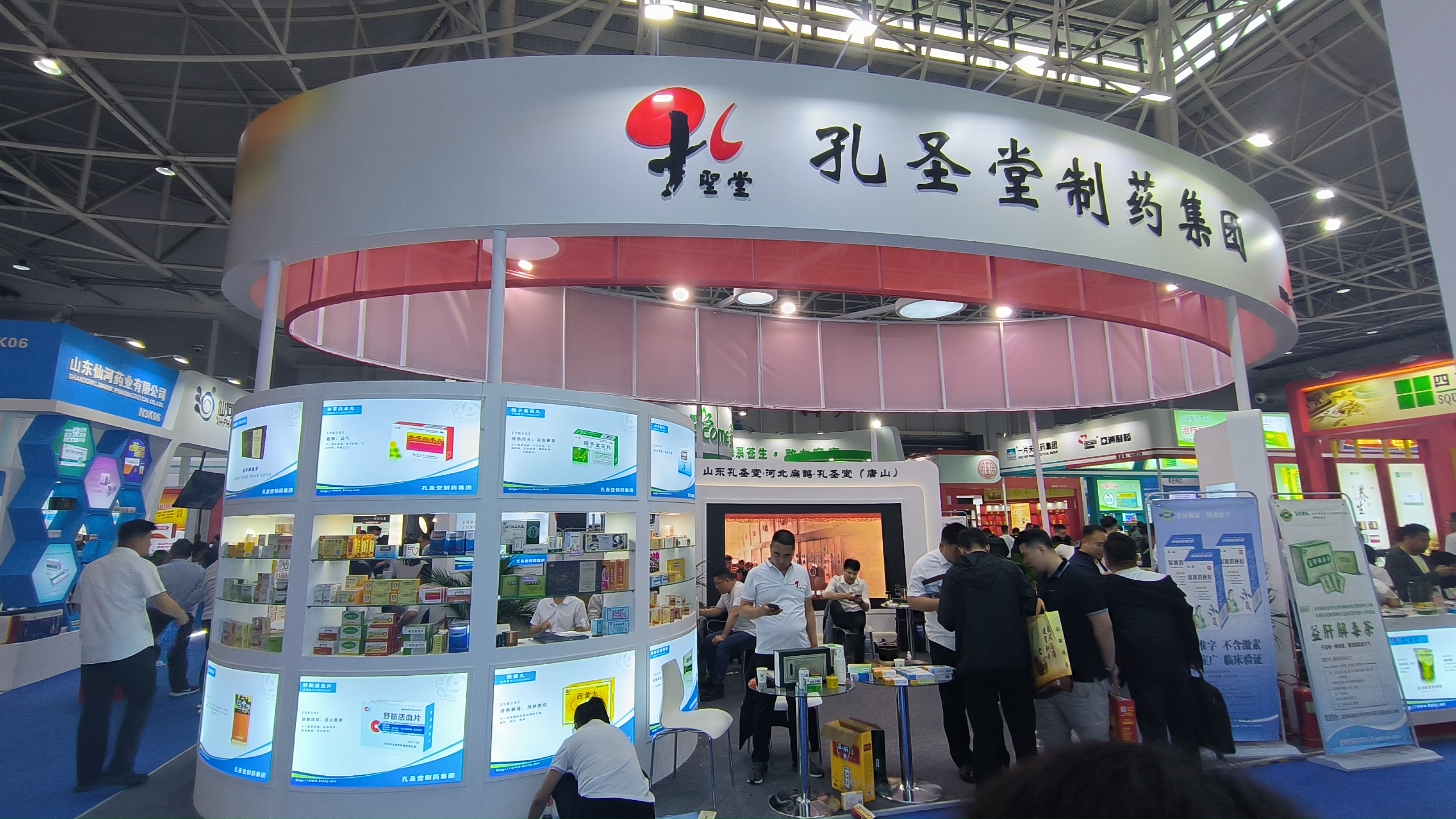 5月9日,第86屆全國(guó)藥品交易會(huì)在青島世博城國(guó)際展覽中心盛大開(kāi)幕。本屆藥交會(huì)更是吸引來(lái)自全國(guó)30多個(gè)省市和地區(qū)、10萬(wàn)+專業(yè)觀眾參展。孔圣堂制藥集團(tuán)精心布展,高效開(kāi)拓市場(chǎng)商機(jī)。除安宮牛黃丸、牛黃清心丸及坤寶丸三大明星產(chǎn)品之外,玉玲消渴茶、益肝解毒茶、苦丁降壓膠囊、銀冰消痤酊、藿參補(bǔ)腎酒等孔圣堂集團(tuán)眾多產(chǎn)品在藥交會(huì)平臺(tái)上紛紛亮相,濃厚的企業(yè)文化及體驗(yàn)氛圍吸引了大批參展商和消費(fèi)者的駐足關(guān)注,前來(lái)咨詢、尋求合作者絡(luò)繹不絕,因疫情闊別已久,再次重逢的喜悅與激動(dòng)書寫在每一位行業(yè)同仁的臉龐,商貿(mào)對(duì)接、洽談交流,人潮涌